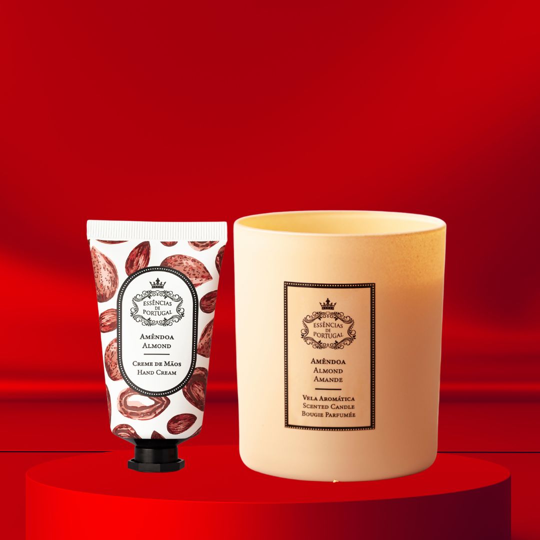 Essências de Portugal Migdolų duetas – tai rankų kremas su migdolų aliejumi ir kvapni žvakė su migdolų aromatu, sukurti kaip viena pojūčių istorija. Šiltas, saldus migdolų kvapas lydi tiek kasdienę rankų priežiūrą, tiek vakaro tylą, pripildydamas erdvę jaukumo ir lėtumo.