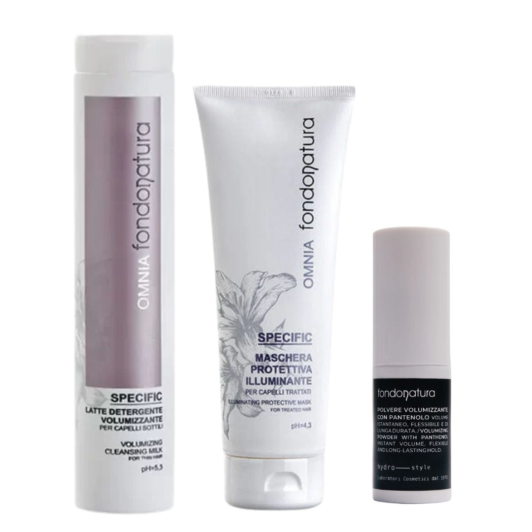 Omnia šampūnas ir kaukė pirmiausia stiprina plaukus iš vidaus ir saugo spalvą, o pudra suteikia lengvą, purią ir ilgai išliekančią apimtį.