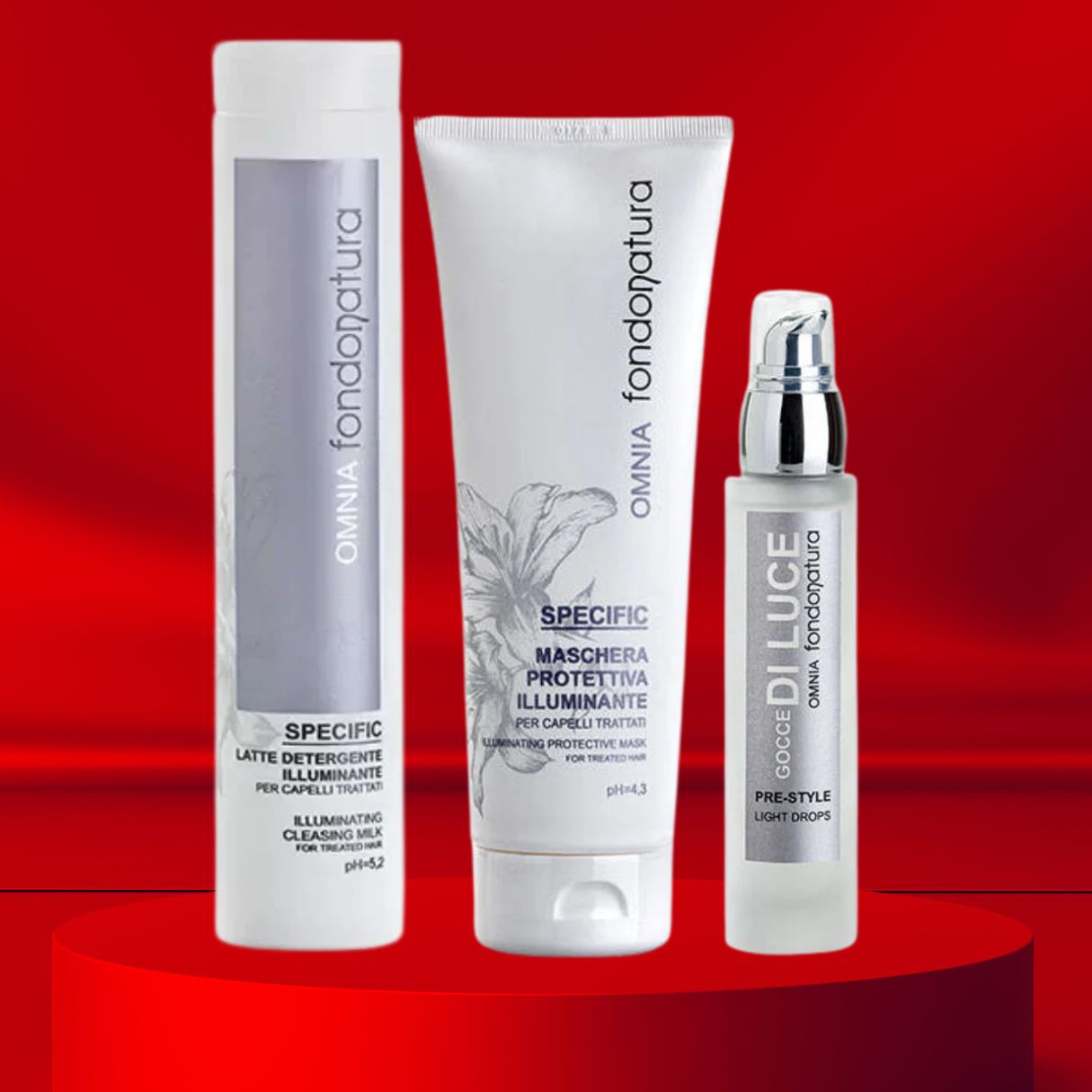 Šis OMNIA plaukų priežiūros rinkinys sukurtas tam, kad plaukai akimirksniu taptų švytintys, glotnūs ir švelnūs. Rinkinį sudaro trys profesionalios priemonės: šampūnas-pienelis, atstatomoji kaukė ir lengvas „Light Drops“ serumas. Kiekvienas produktas veikia savarankiškai, tačiau kartu suteikia matomą rezultatą jau po pirmo karto.